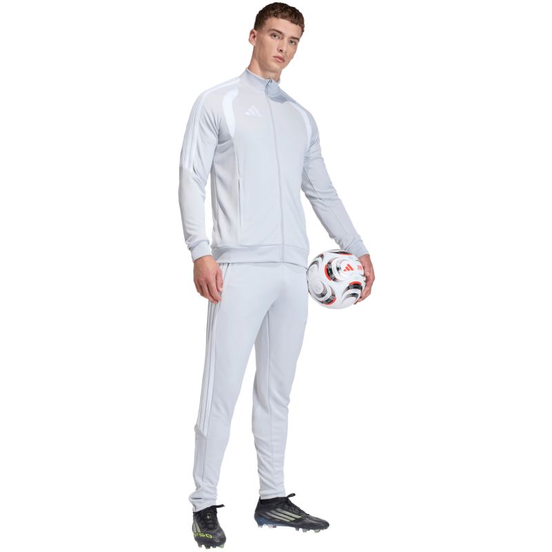 adidas Tiro 26 League Trainings-Sweatshirt für Herren, Grau JY7204. Dieses adidas Fußball-Sweatshirt für Herren ist ideal fürs Training. Stehkragen. Durchgehender Reißverschluss. Schmale Passform. Die Climacoool-Technologie absorbiert und leitet Feuchtigkeit ab. Mesh-Einsätze im Brustbereich. Seitliche Reißverschlusstaschen. Kinnschutz. Gestreifte Ärmel. Dezentes Logo. Recycelte Fasern. Material: 100 % recyceltes Polyester.