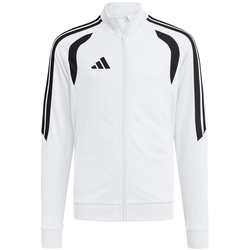 adidas Tiro 26 League Trainings-Sweatshirt für Kinder, Weiß KT2339. Dieses adidas Fußball-Sweatshirt für Kinder ist perfekt fürs Training. Stehkragen. Durchgehender Reißverschluss. Schmale Passform. Climacool-Technologie leitet Schweiß ab. Streifen an den Ärmeln. Dezentes Logo. Schnelltrocknende Fasern. Material: 100 % recyceltes Polyester