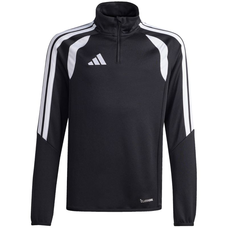 adidas Tiro 26 League Trainingsshirt für Kinder, Schwarz-Weiß JY7161. Dieses adidas Fußball-Sweatshirt für Kinder ist perfekt fürs Training. Es verfügt über einen Kinnschutz und einen halben Reißverschluss. Schmale Passform. Die Climacool-Technologie sorgt für ein angenehm kühles und trockenes Tragegefühl, damit du dich voll auf das Spiel konzentrieren kannst. Saum und Bündchen sind elastisch. Kontrastierende Mesh-Einsätze. Streifen an den Ärmeln. Dezentes Logo auf der Brust. Material: 100 % recyceltes Polyester.