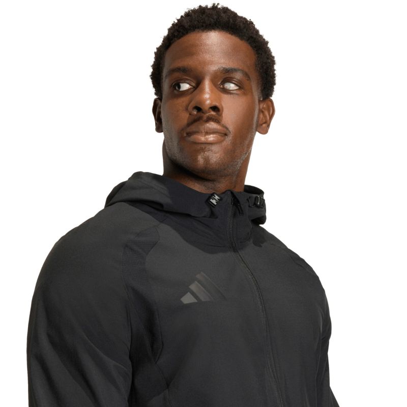 adidas Tiro 26 Travel Windbreaker für Herren, Schwarz JM5539. Dieser Herren-Windbreaker, inspiriert von adidas' Fußballtradition, vereint Funktionalität mit modernem Stil. Die schlichte, elegante Silhouette mit schmaler Passform und ergonomischen Nähten sorgt für einen natürlichen Fall und optimale Bewegungsfreiheit. Mit durchgehendem Reißverschluss und verstellbarer Kapuze. Leichtes, glattes Material. Dezente Details mit dem adidas Logo. Diese Jacke ist perfekt für Training und Alltag. Spezifikationen: Material: 87 % recyceltes Polyester, 13 % Elastan. Schmale Passform. Reißverschluss. Elastische Bündchen. Verstellbare Kapuze mit Kordelzug. Seitliche Reißverschlusstaschen. Elastischer Saum.