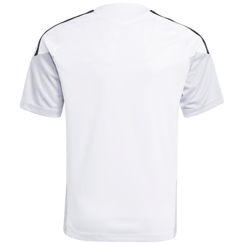 Das adidas Tiro 26 Competition Trainingsshirt für Kinder, weiß-schwarz, KA7603. Dieses adidas Trikot ist perfekt für Training und wichtige Spiele. Es hat eine normale Passform, Mesh-Einsätze im Brustbereich, Climacool-Technologie für optimalen Feuchtigkeitstransport, recycelte Fasern, ein dezentes Logo und Streifen an den Ärmeln. Material: 100 % recyceltes Polyester.