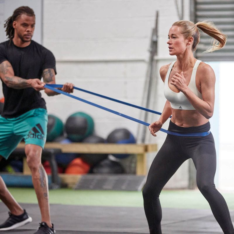 adidas Widerstandsbänder sind in 3 Schwierigkeitsstufen erhältlich: blau – leicht schwarz – mittel rot – schwer