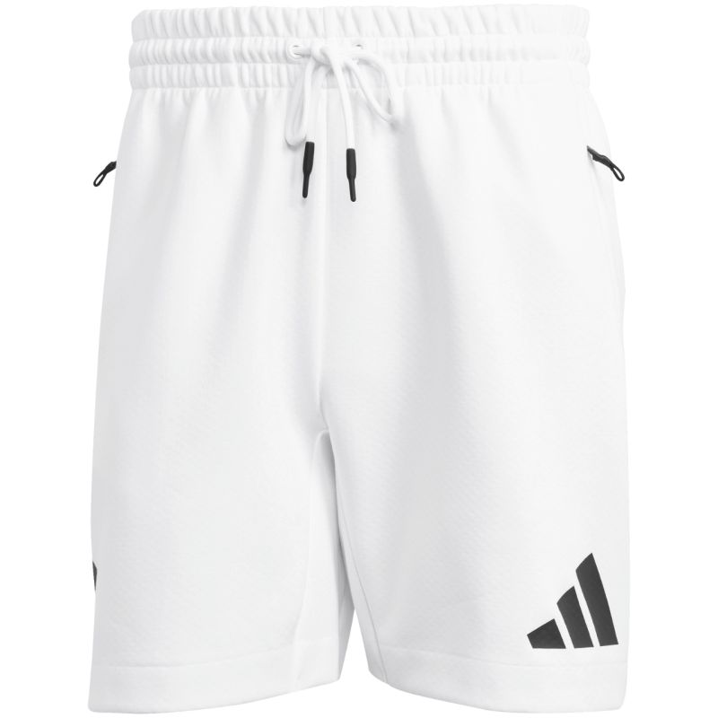 adidas ZNE Herrenshorts JJ4893 Weiß. Sportliche adidas Shorts für aktive Männer, die Wert auf Funktionalität und sportlichen Style legen. Normale Passform. Elastischer Bund mit Kordelzug. Mittelhoher Bund. Reißverschlusstaschen vorne. Dreilagiges Material. Design mit gummierten Akzenten. Material: 57 % recyceltes Polyester, 43 % Baumwolle