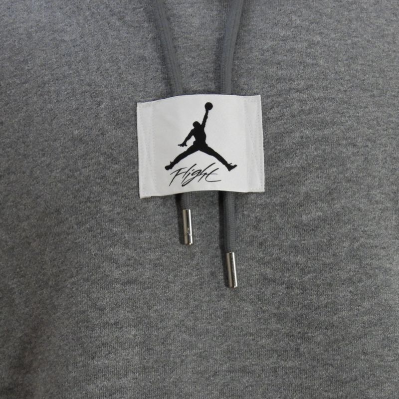 Modell DQ7338-091 in grauer Farbe mit einem großen Jumpman Jordan Logo-Aufnäher auf der Vorderseite.