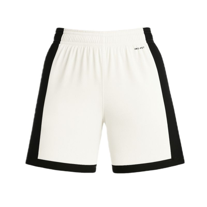 Die Shorts sind in einem einheitlichen Weißton mit schwarzen Akzenten gehalten, was ihnen einen dynamischen und ausdrucksstarken Look verleiht.