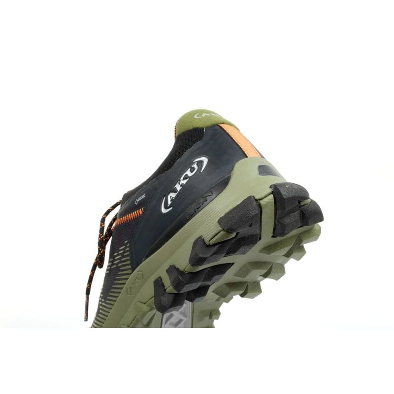 - Das Produkt nutzt außerdem die Sohlenkonstruktion von Aku Elica, die die natürliche Form des Fußes originalgetreu nachbildet und sich anatomisch daran anpasst, wodurch jeder Schritt abgefedert wird.