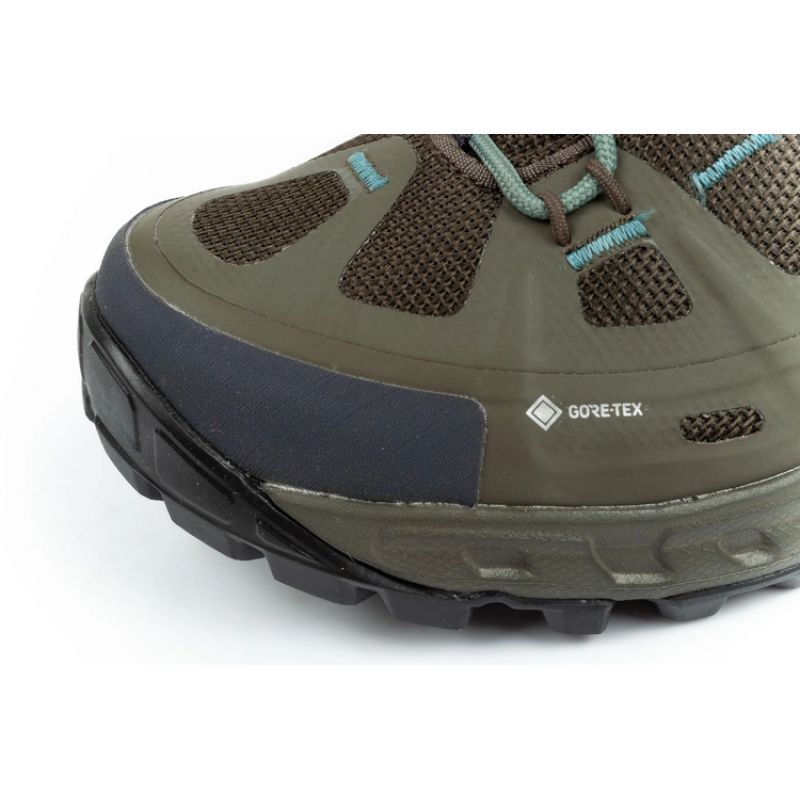 - Die Schuhe sind mit der Gore-Tex -Technologie ausgestattet, einem laminierten Futter aus 99 % recyceltem Material, das dank spezifischer Parameter dreifachen Schutz vor Witterungseinflüssen bietet: Wasserdichtigkeit, Winddichtigkeit und Atmungsaktivität, wobei das zusätzliche AIR8000-System die doppelte Atmungsaktivität gewährleistet.