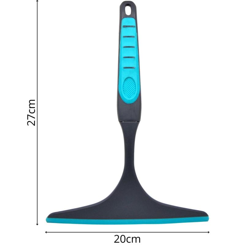 - Der ergonomische Griff ermöglicht ein bequemes Reinigen von Glas oder Spiegeln.