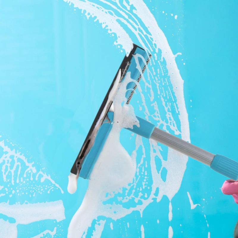 - Der verstellbare Griff ermöglicht ein bequemes Reinigen des Glases oder Spiegels.