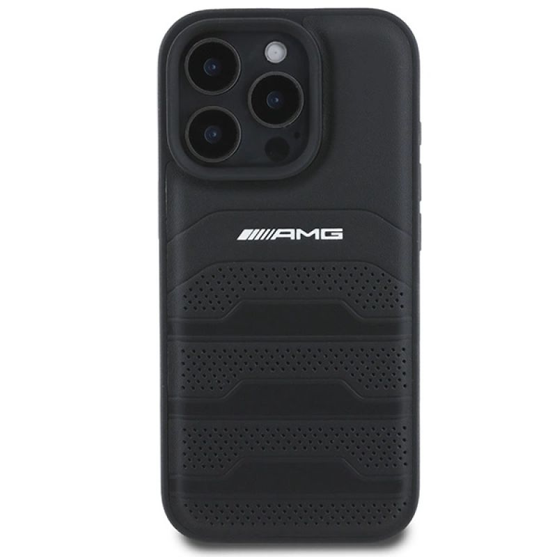 AMG-Lederhülle mit eingeprägtem Linien-Logo in Schwarz für iPhone 16 Pro Max – Schwarz