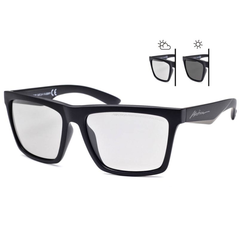 Schwarze, leichte Arctica S-328FP Sonnenbrille aus Polycarbonat mit polarisierenden und photochromen Gläsern