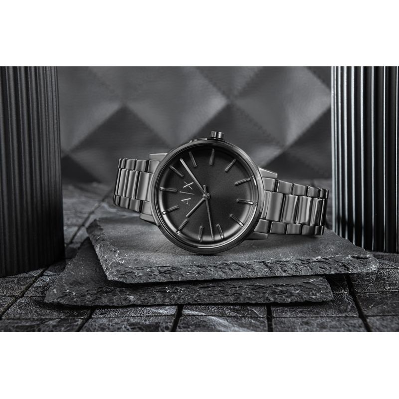 Die Armbänder von Armani Exchange, gefertigt aus hochwertigstem Edelstahl, vereinen robuste Langlebigkeit mit ansprechender Eleganz. Ihre stabile Konstruktion steht nicht nur für Zuverlässigkeit, sondern garantiert auch, dass die Uhr sicher am Handgelenk sitzt – ganz gleich, welchen Herausforderungen der Tag gewachsen ist. Die präzise und sichere Schließe trägt das A|X-Logo.