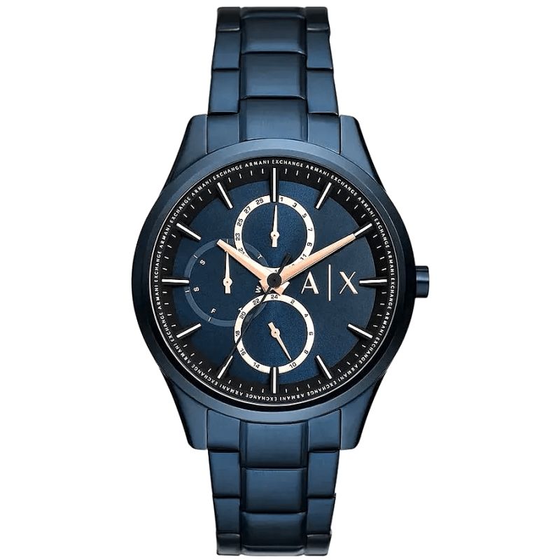 Die Armani Exchange AX1881 ist mehr als nur eine Uhr – sie ist ein Statement von Stärke und Charakter. Schon beim ersten Anfassen spürt man die solide Verarbeitung des gebürsteten Armbands, das sich wie eine Rüstung um das Handgelenk schmiegt. Das Marineblau, das an industriellen Minimalismus erinnert, strahlt eine geheimnisvolle Eleganz aus, während dezente Akzente einen modernen, dynamischen Charakter verleihen. Das Zifferblatt ist faszinierend und erzeugt eine Aura der Tiefe, auf der kupferfarbene Zeiger mit chirurgischer Präzision den Rhythmus jedes Augenblicks markieren.