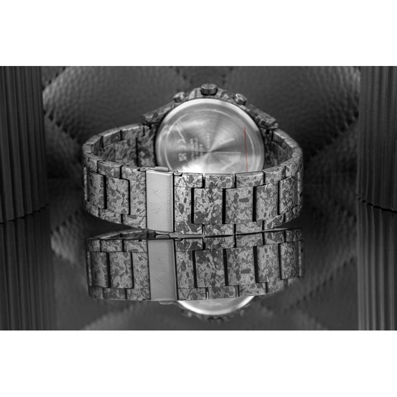 Ein massives Gehäuse mit einer einzigartigen, an Beton erinnernden Struktur hebt dieses Modell von klassischen Zeitmessern ab. Das robuste, steinartige Design der AX2462 fesselt den Blick und verkörpert Stärke und Unbeugsamkeit. Das tiefe Schwarz des strukturierten Zifferblatts zieht die Aufmerksamkeit auf sich, während die präzisen Zeiger Perfektion bis ins kleinste Detail versprechen. Das angenehme Gewicht des Armbands am Handgelenk vermittelt Vertrauen in Zuverlässigkeit und kompromisslosen Stil. Diese Uhr ist für den Mann, der weiß, dass wahre Stärke im Detail liegt.