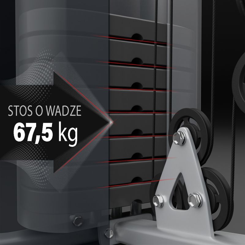 Mit dem Tytan 7 können Sie verschiedene Muskelgruppen sicher trainieren – wie in einem professionellen Fitnessstudio. Das geflochtene Stahlkabel garantiert eine Zugkraft von bis zu 1000 kg, während die untere Stange als Langhantel oder Rudergerät verwendet werden kann. Es ist die ideale Lösung für Frauen und Männer, die ihre Fitness und ihren Körper verbessern sowie Muskelmasse aufbauen und stärken möchten.