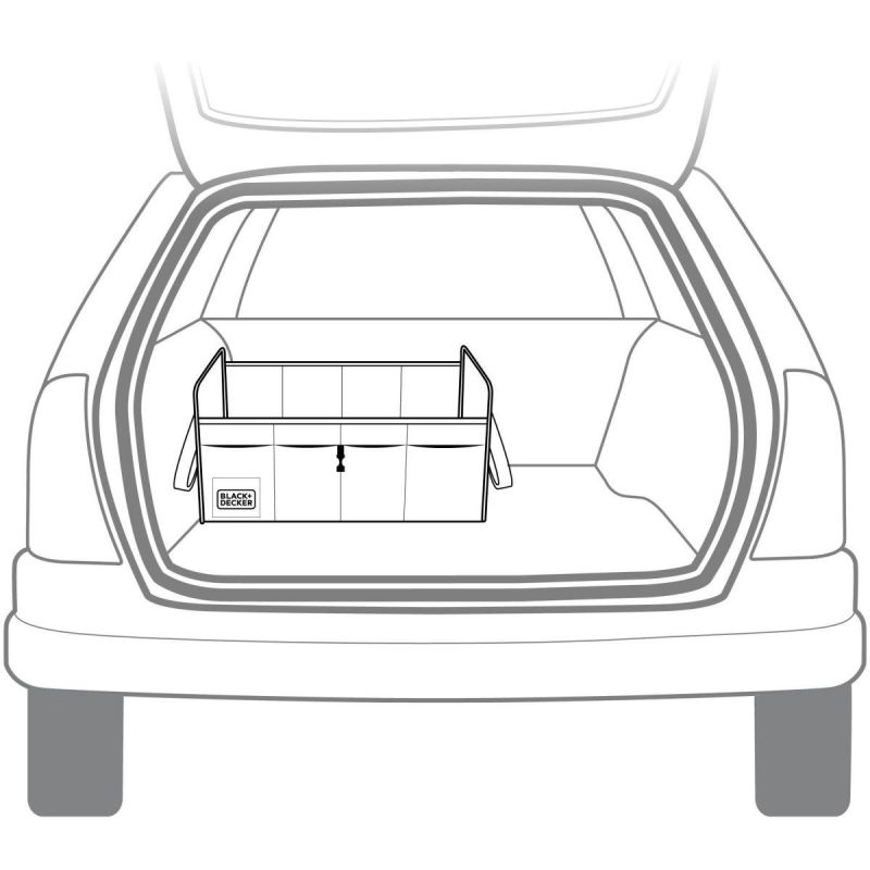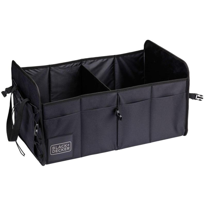 BLACK+DECKER Organizer 59x36x30 cm – Ordnung mit Stil! Zwei Fächer, Seitentaschen, verstärkte Wände und Klettverschluss für sicheren Halt – dieser Organizer sorgt nicht nur für Ordnung in Ihrem Kofferraum, sondern sieht dabei auch noch gut aus!