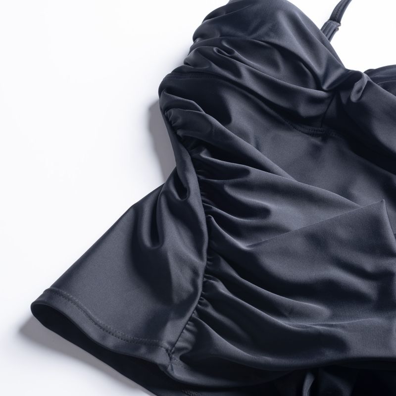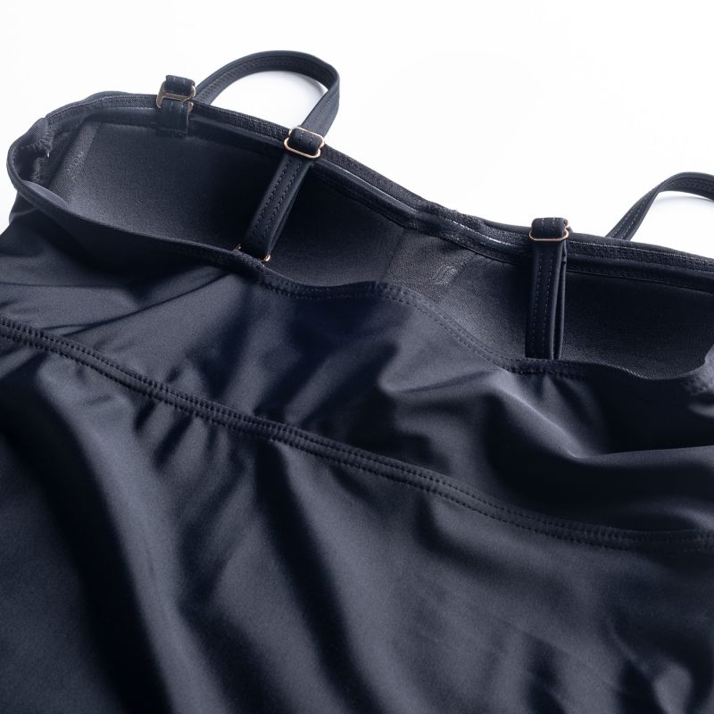 - Abnehmbare, verstellbare Träger. Seitliche Raffungen. Dehnbares Material.