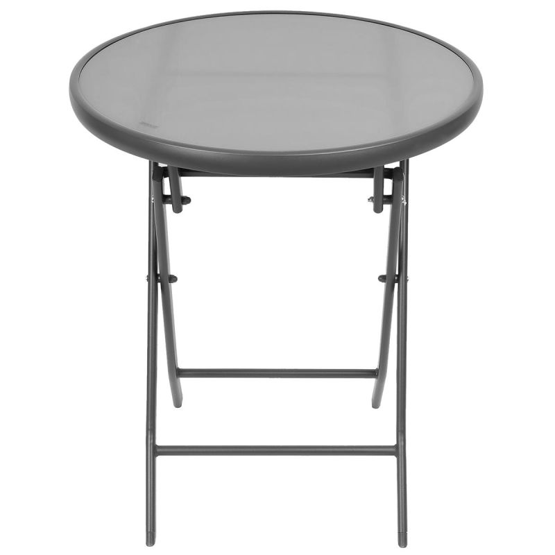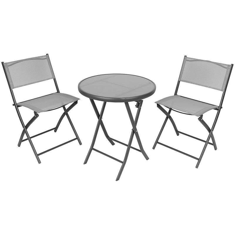 Balkonmöbel-Set, runder Tisch und 2 Klappstühle, grau