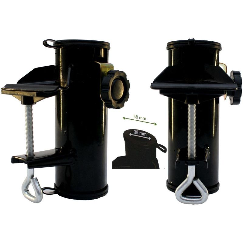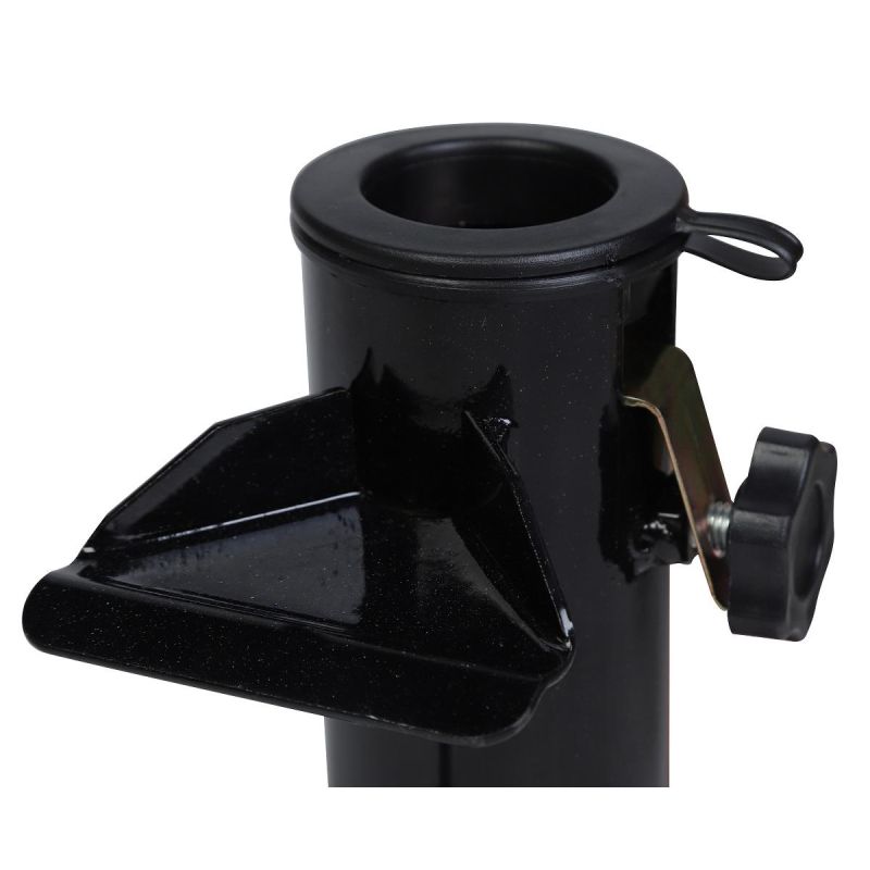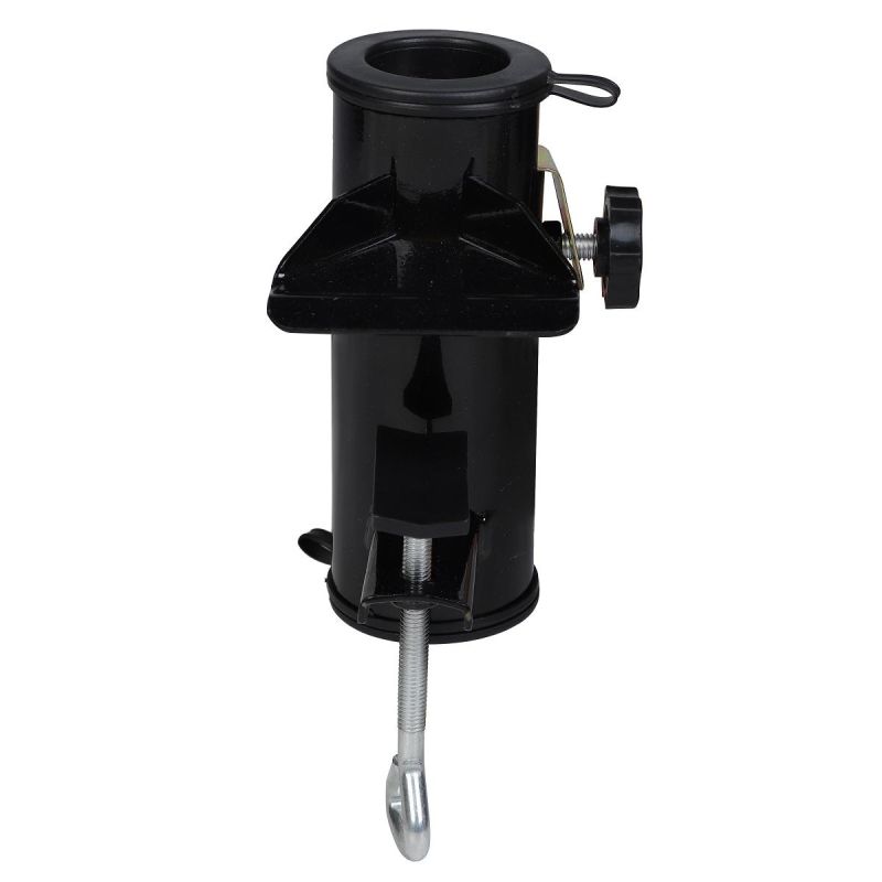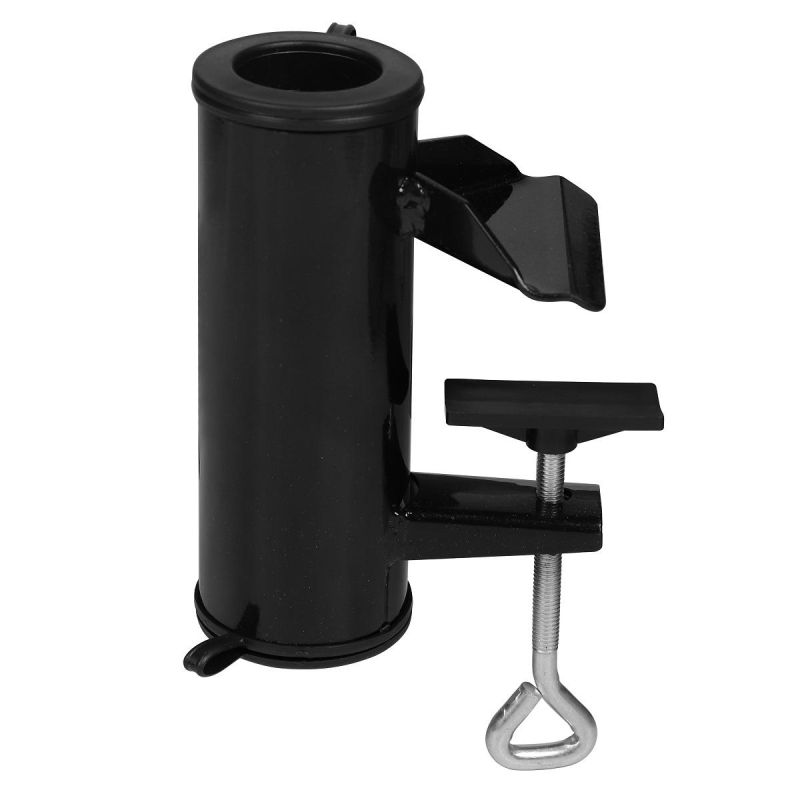 Unser Sockel ist vielseitig. Er ermöglicht die Befestigung nicht nur eines Sonnenschirms, sondern auch einer Fahne oder anderer stangenmontierter Gegenstände an einem Balkongeländer, einem Handlauf oder einer Tischplatte.