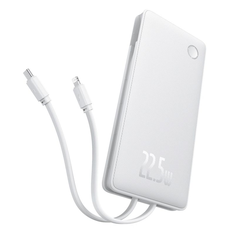 Baseus Airpow Lite 10000mAh 22,5W Powerbank mit integrierten USB-C- und Lightning Kabeln – Weiß