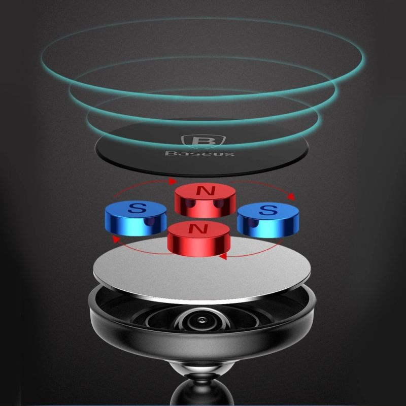Baseus Bullet An On-board is an amazing car mount with stylish metal texture and powerful magnetic force. Made of premium quality aluminum, durable accessory with beautiful circular arc appearance, precisely cut and polished by CNC. All that provides comfortable and smooth hand feeling. Thanks to 4 Rb magnets (well-known as "Magnet King") powerful magnetic forces can draw your phone tightly on the complex road. Also, them not affect the phone signal. The bracket has 360 universal rotation and 3M glue strong adsorption. It’s easy to operate with only one hand.
