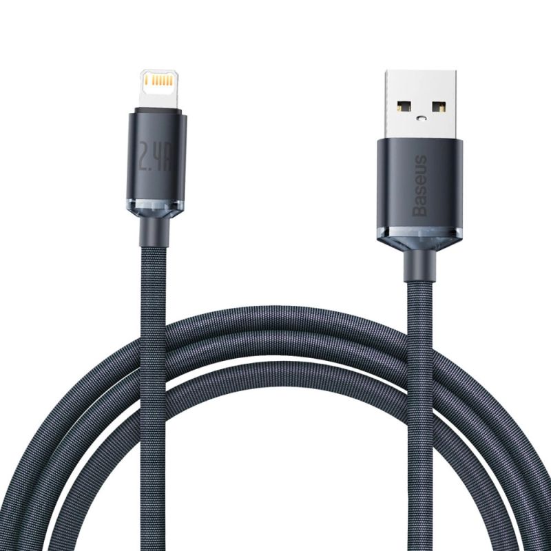 Baseus Crystal Shine Series Kabel USB-Kabel für schnelles Aufladen und Datenübertragung USB Typ A - Lightning 2.4A 2m schwarz (CAJY000101)