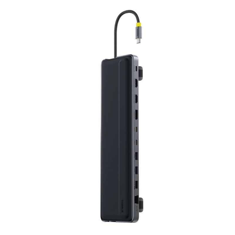 Baseus EliteJoy EH3 Hub 12-in-1 USB-C Dockingstation – 2x HDMI 4K@60Hz, DisplayPort 4K@60Hz, 2x USB-C 10 Gbit/s, 2x USB-A 5 Gbit/s, USB-A 480 Mbit/s, SD/microSD 3.0, RJ45 1 Gigabit, USB-C Power Delivery – Grau