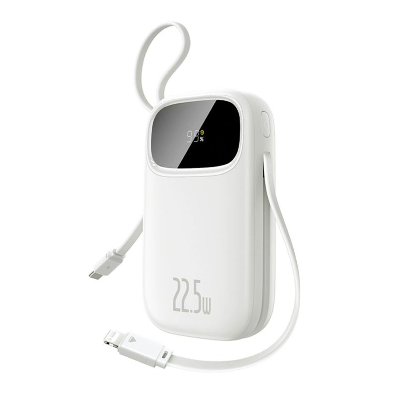 Baseus EnerFill FC31 10000mAh 22,5W Powerbank mit Digitalanzeige und 2 integrierten Kabeln – Weiß