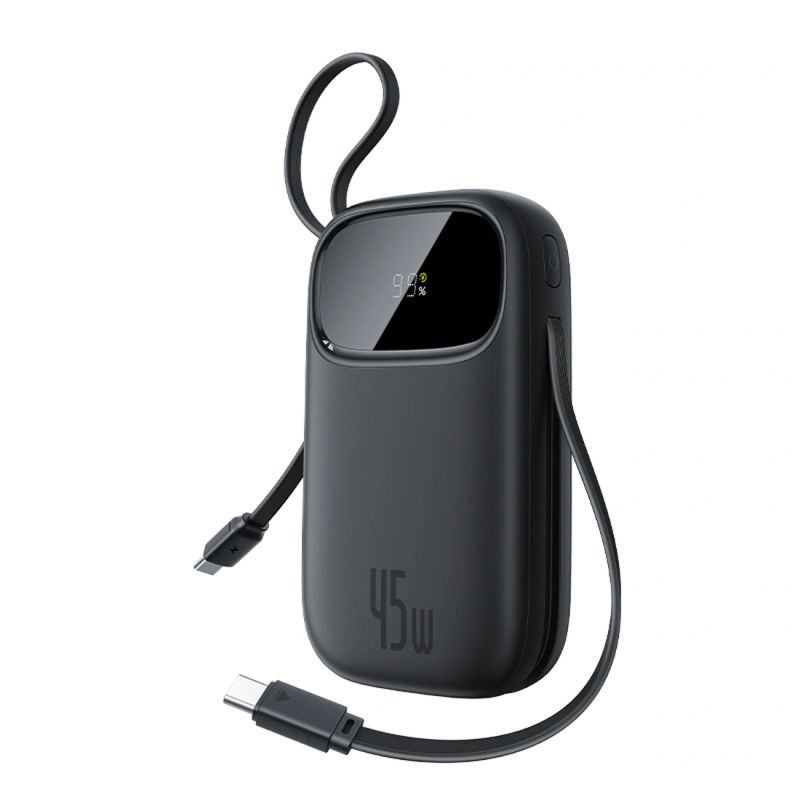 Baseus EnerFill FC31 20000mAh 45W Powerbank mit Digitalanzeige und 2 integrierten USB-C-Kabeln – Schwarz