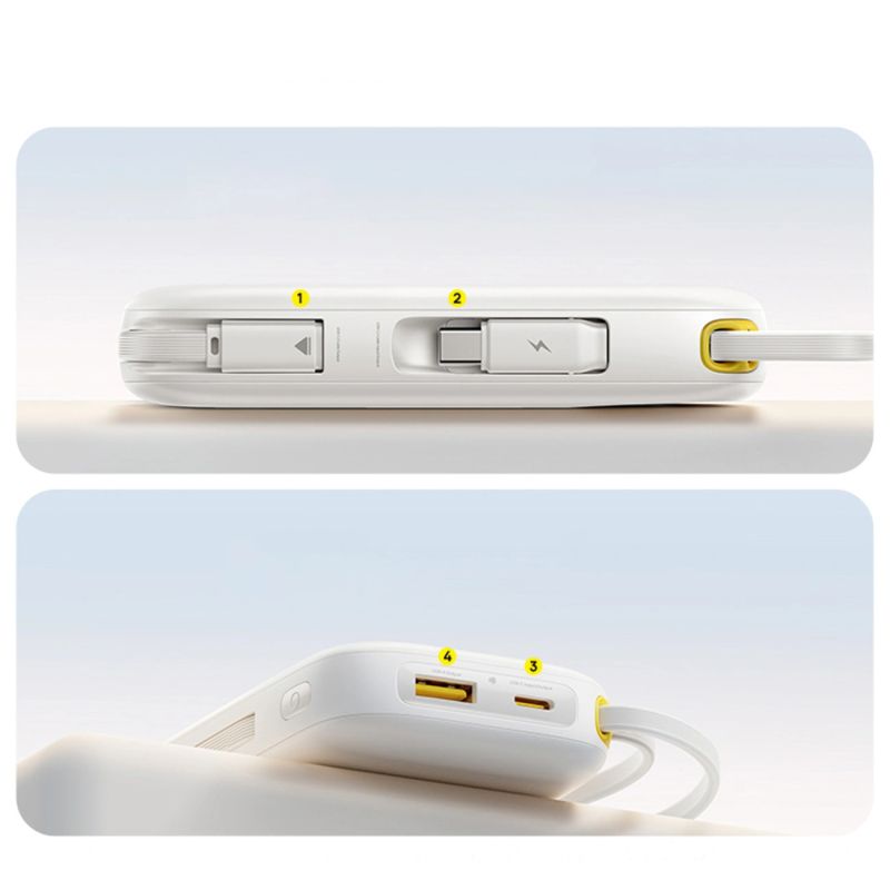 Baseus EnerFill FC31 20000mAh 45W Powerbank mit Digitalanzeige und 2 integrierten USB-C-Kabeln – Weiß