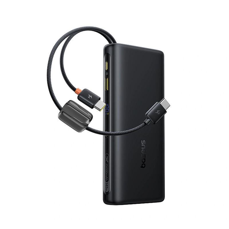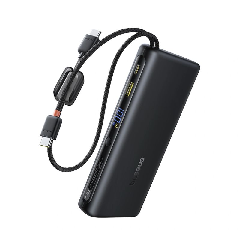 Baseus EnerFill FC41 25000mAh 145W Powerbank mit Digitalanzeige und integriertem Dual-USB-C-Kabel – Schwarz