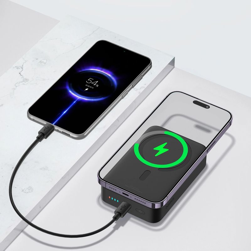 Legen Sie Ihr Telefon einfach auf die Powerbank, um den Ladevorgang zu starten. Dadurch entfällt das Anschließen eines Kabels und die tägliche Nutzung Ihres Geräts wird beschleunigt.