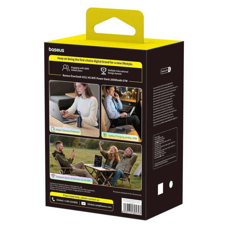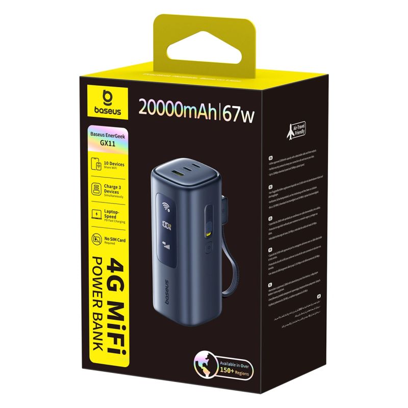 Baseus EnerGeek GX11 MiFi 20000mAh 67W Powerbank mit WLAN-Funktion - Schwarz