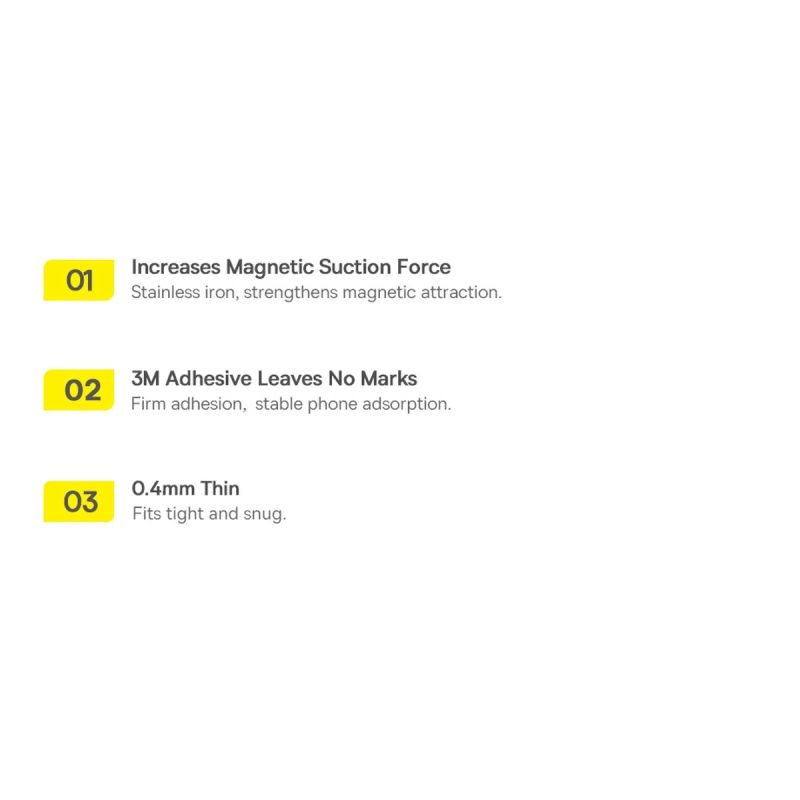 Baseus Halo ist ein Magnetring für Smartphones und Hüllen. Es ist für Geräte konzipiert, die über die kabellose Qi-Ladefunktion verfügen. Das Produkt ist für eine schnelle Installation geeignet - kleben Sie es einfach auf die ausgewählte Oberfläche. Die Dicke des Rings überschreitet nicht 0,4 mm, was sich in einer bequemen Verwendung niederschlägt.
