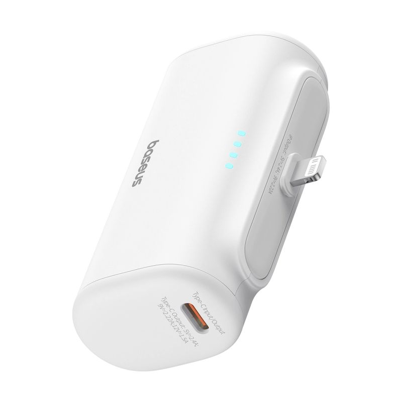 Baseus Kompakte 5000mAh 20W Powerbank mit Lightning Anschluss und USB-C-Buchse – Weiß