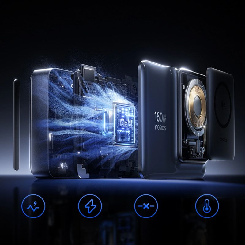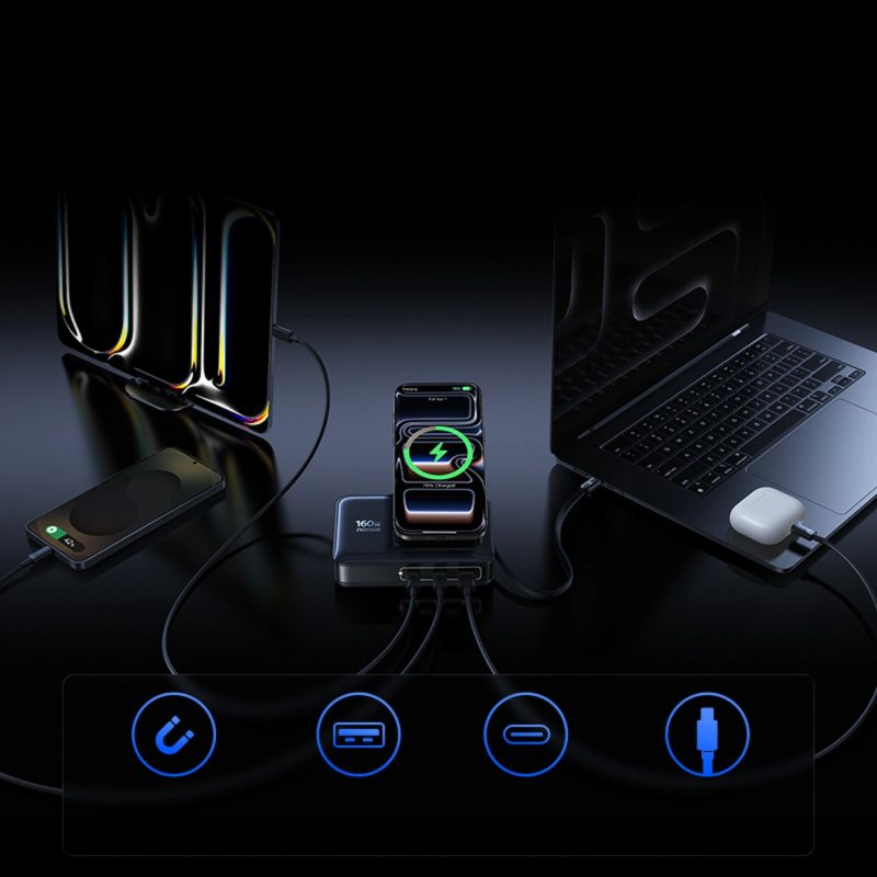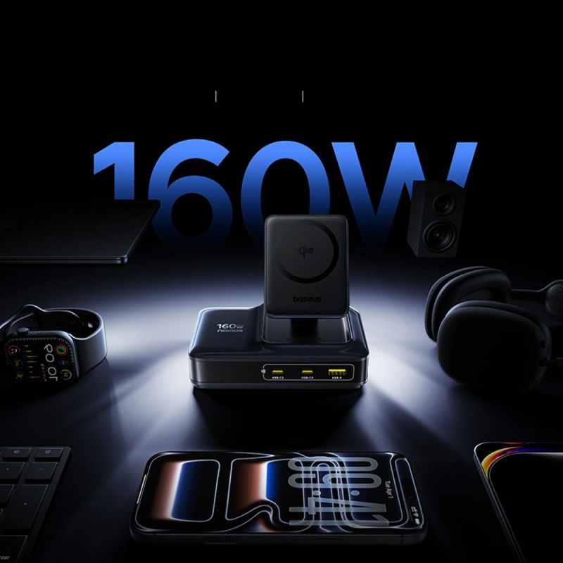 Die maximale Leistung von 160 W ermöglicht das gleichzeitige Laden eines Laptops, eines Smartphones und anderer Geräte ohne Leistungseinbußen, was sowohl im Büro als auch zu Hause von Vorteil ist.