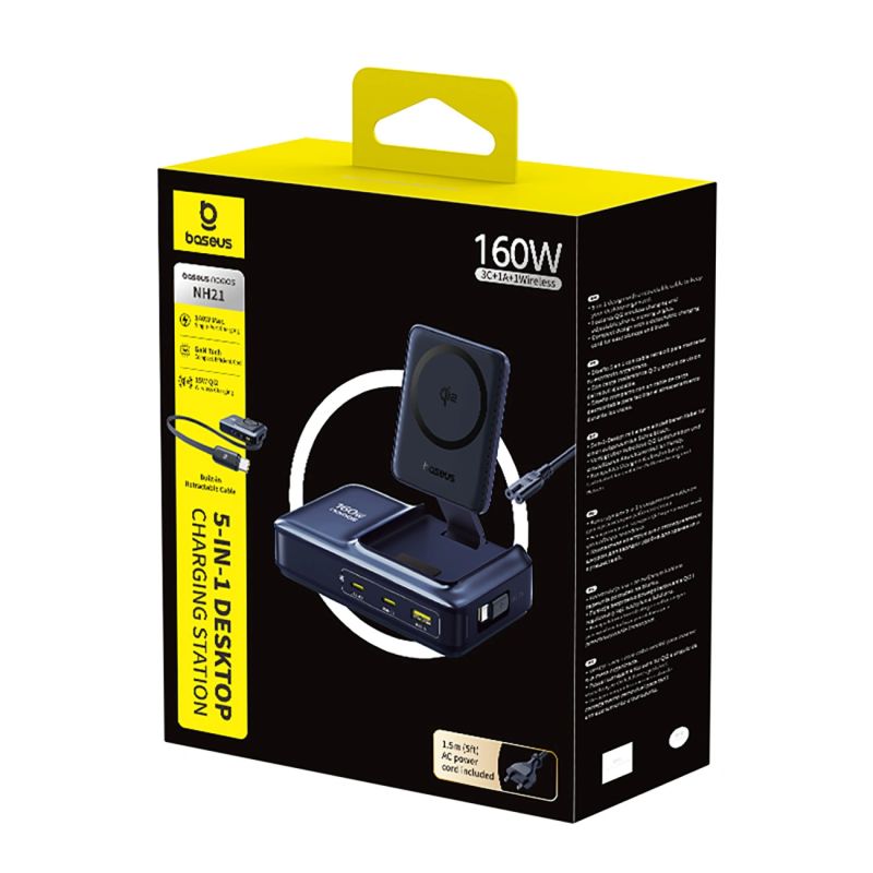 Baseus Nomos NH21 Qi2 160W 5-in-1 Kabellose Ladestation mit einziehbarem Kabel – Schwarz