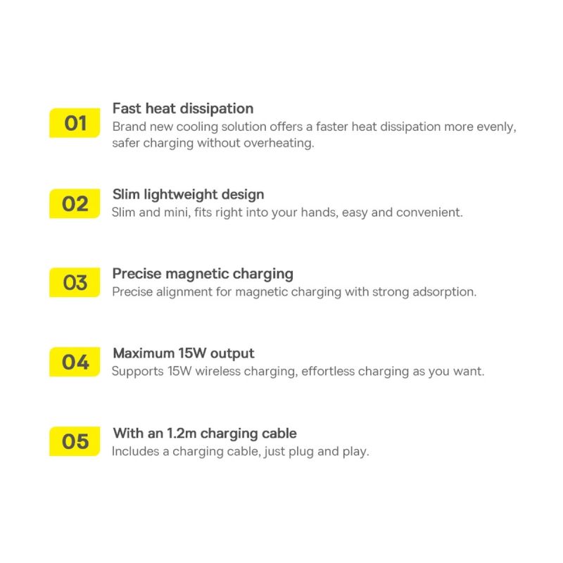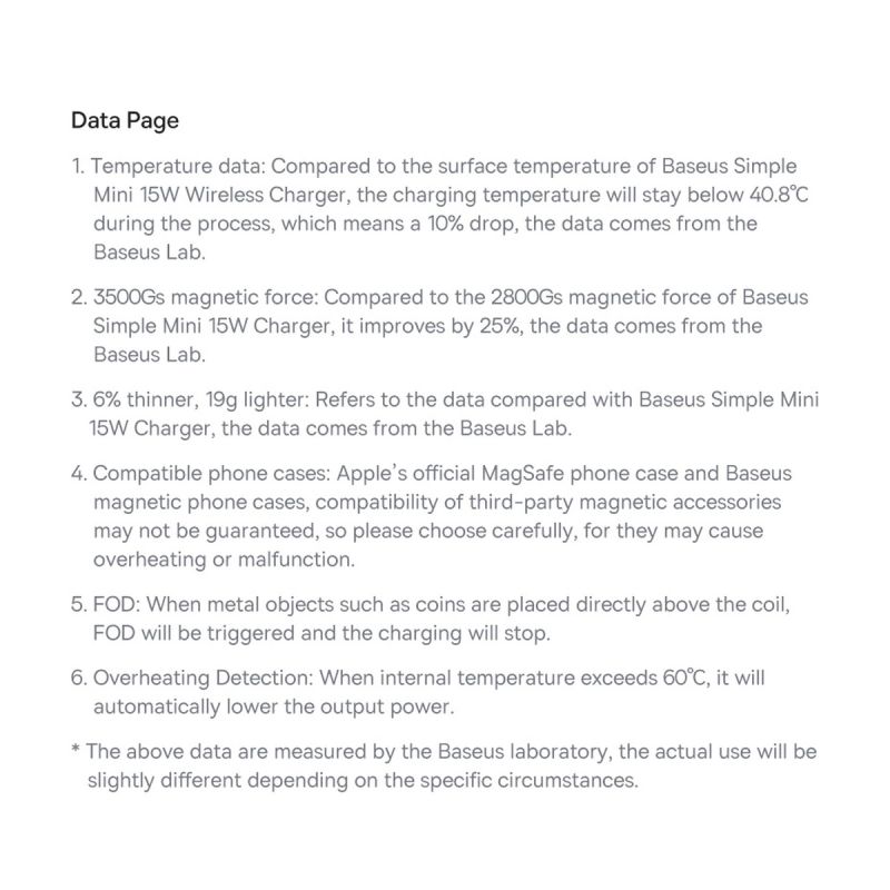 Das Baseus Ladegerät hat sehr gute Parameter und unterstützt die gängigsten Telefonmodelle, die mit der drahtlosen Ladefunktion Qi, MagSafe ausgestattet sind. Das Gadget besteht aus PC-Material und ist mit Schutzvorrichtungen ausgestattet, um das Gerät vor Beschädigung oder Überhitzung zu schützen. Er eignet sich perfekt für den häufigen Gebrauch und passt sich mit seinem Design dem Erscheinungsbild moderner Wohn- oder Büroeinrichtungen an.