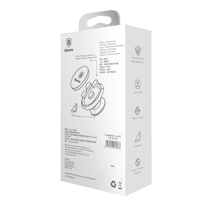 Dank seiner geringen Größe passt der Baseus Small Ears Series nicht nur elegant in jeden Fahrzeuginnenraum, sondern behindert auch nicht die Sicht auf die Straße. Sein kompaktes Design sorgt dafür, dass er die Ästhetik des Innenraums nicht stört, was für diejenigen wichtig ist, die Wert auf Ordnung und Stil legen. Trotz seiner geringen Größe bietet der Halter volle Funktionalität ohne Einbußen bei der Haltbarkeit.