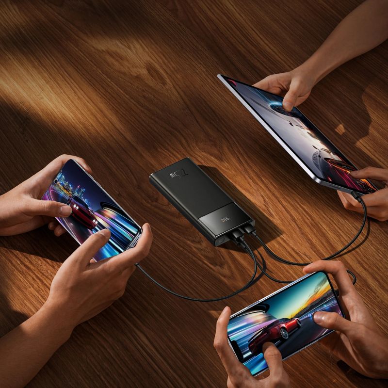 Dank der drei Ausgangsanschlüsse können Sie mit der Powerbank mehrere Geräte gleichzeitig mit Strom versorgen, was auf Reisen und während eines anstrengenden Arbeitstages von Vorteil ist.