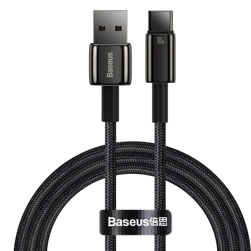 Baseus Wolfram Gold USB-A auf USB-C Kabel 480Mb/s 100W 1m Schwarz (CAWJ000001)