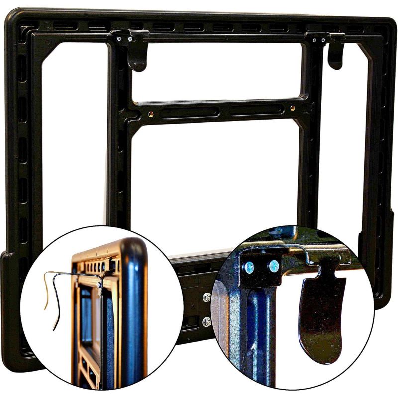 - Die Montage an Haken ermöglicht eine freie Höhenverstellung für den Benutzer.