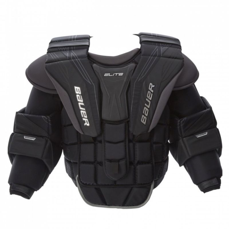 Die Elite-Weste ist derzeit die einzige Bauer-Torwartweste in dieser Preis- und Leistungsklasse. Diese Weste vereint das Beste aus den Produktfamilien Supreme und Vapor, insbesondere die Flexibilität/Mobilität der Vapor-Weste und die Abdeckung/den „robusten Look“ der Supreme-Weste. Diese Weste ist nicht nur eine großartige Wahl für wettkampforientierte Jugendtorhüter, sondern auch für Amateurtorhüter, die eine hochwertige Weste suchen, die sie vor Puckstößen schützt. Die Weste verfügt über hochwertigen Schutzschaum, zwei Befestigungspunkte für die Weste an der Hose und vor allem über die Möglichkeit, die Westengröße an die Bedürfnisse des Torhüters anzupassen – ein Niveau, an das Konkurrenzwesten nicht einmal annähernd herankommen. Das wasserdichte, atmungsaktive ThermoMax-Futter bietet dem Torhüter hervorragenden Komfort beim Kampf auf dem Eis.