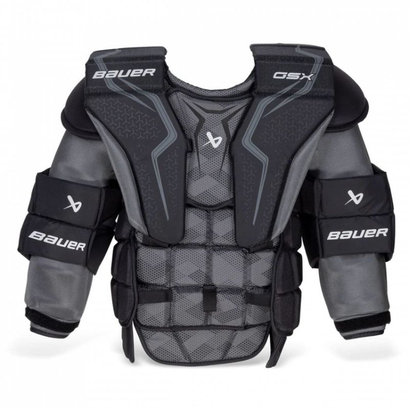 Die Bauer GSX '23 Sr. Torwartweste ist ideal für Anfänger und Freizeittorhüter. Das leichte, klassische Design sorgt für ein angenehmes Gefühl zwischen den Pfosten und ermöglicht es Ihnen, erste Paraden zu zeigen. Hauptmerkmale: Die Bauer GSX '23 Sr. Weste ist die Premium-Option für Eishockeytorhüter, die optimalen Schutz, Komfort und Bewegungsfreiheit auf dem Eis suchen. Sie wurde entwickelt, um den Anforderungen des Profisports standzuhalten und gibt dem Torwart das nötige Selbstvertrauen und die Sicherheit, um Bestleistungen zu erzielen. Gewichtsoptimierung – 5 % leichter als das Vorgängermodell Bauer GSX.