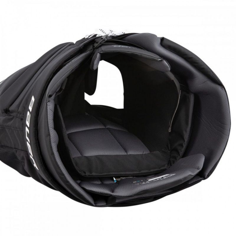 Die Bauer Pro '20 Sr. Torwarthose. Die PRO Hose ist Bauers einziges Profimodell in dieser Kategorie und bietet das Beste der Serien Supreme und Vapor. Die Hose wurde basierend auf dem Feedback von professionellen Torhütern entwickelt und bietet Schutz für alle Körperteile unter Verwendung der besten in der Hockeybranche verfügbaren Materialien. Die Oberschenkel bestehen aus Curv-Verbundwerkstoff, während das Gesäß durch Poron- und Shock Lite-Schaum geschützt ist. Die Hose ist doppelt eng anliegend, mit einem inneren Bund und einem äußeren Riemen, und verfügt über klassische Hockey-Schnürsenkel, die ein Verrutschen einfach nicht zulassen. Spezielle Reißverschlüsse ermöglichen eine Verlängerung der Hose um bis zu 2,5 cm. Die maximal zulässige Oberschenkelweite von 25 cm ermöglicht es Ihnen, den Platz im Tor zu maximieren. Die Innenseite der Hose ist mit dem bewährten Premium-ThermoMax-Futter gefüttert, das dem Spieler hervorragenden Komfort und Bequemlichkeit garantiert.
