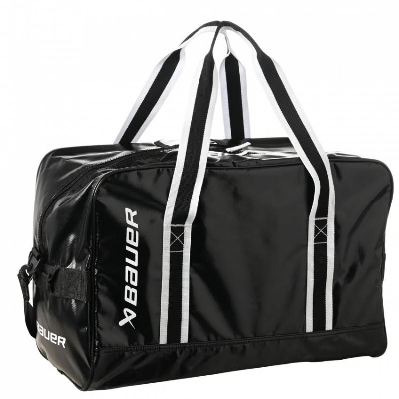Traditioneller Stil mit professioneller Haltbarkeit und unübertroffenem Fassungsvermögen. Diese Hockeytasche besteht aus Pro-Tarp-Materialien, die auch in BAUER-Hockeytaschen verwendet werden. Entwickelt für Eisbahn und Fitnessstudio, bieten zwei Netztaschen im Inneren Ordnung für kleinere Gegenstände. Tragegriffe und ein abnehmbarer Schultergurt erleichtern den Transport. Personalisieren Sie die Tasche mit Ihrem Teamlogo auf allen Seiten.