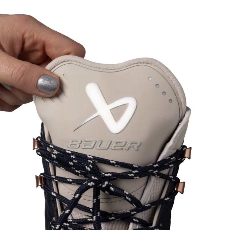 Bauer Radiant beheizte Junior-Freizeitschlittschuhe. Dies sind die ersten beheizten Schlittschuhe überhaupt, entwickelt als Teil der innovativen BAUER REDLINE-Kollektion. Ausgestattet mit einem beheizten Innenschuh mit drei Heizstufen bieten sie Komfort und Bequemlichkeit auch an den kältesten Tagen. Hauptmerkmale: Innovative Heizung: Ein Knopf auf der Zunge aktiviert die im Innenschuh integrierten Heizelemente und wählt einen von drei Betriebsmodi. Eine wasserdichte Batterie in der Zunge bietet bis zu 7 Stunden* Wärme und ist schnell und einfach wiederaufladbar. Die Betriebsdauer hängt von der gewählten Heizintensitätsstufe ab. Hochwertiges Material – Wärme und Komfort: Eine isolierte Außenschicht, inspiriert von einer Daunenjacke, speichert effektiv Wärme, während ein dickes, weiches Futter einen Komfort garantiert, vergleichbar mit dem Betreten einer warmen Hütte nach einem Tag in der eisigen Kälte. Funktionalität und Ready to Skate: Die Schlittschuhe werden vorgeschärft geliefert (½" Kufenradius), sodass Sie sofort nach dem Auspacken mit dem Schlittschuhlaufen beginnen können. Das Kufenprofil sorgt für optimale Balance und sanftes Gleiten – ideal für Anfänger und Freizeitläufer. Passform: R – Gesamtschuhweite für ein möglichst breites Publikum. Die beheizten Freizeit-Schlittschuhe Bauer Radiant Jr sind eine bahnbrechende Lösung für alle, die Eislaufen in absolutem Komfort und Wärme genießen möchten. Dank moderner Heiztechnologie und der sofortigen Einsatzbereitschaft nach dem Kauf sind sie eine ausgezeichnete Wahl für jeden Wintersportler. TECHNISCHE DATEN Verwendungszweck: Freizeit-Schlittschuhlaufen Kufen: Beschichteter Stahl, vorgeschärft Material: Synthetik. Außenschicht inspiriert von einer Daunenjacke Zunge: Der Akku in der wasserdichten Zunge lässt sich leicht entnehmen und vollständig aufladen. Kufen können im EDGE-System ausgetauscht werden Nein Thermoformung Nein Futter: Beheizt, dick, weich, isoliert