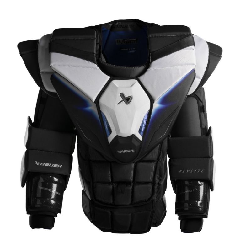 Bauer Vapor Flylite Sr Torwartweste: Instinktiv reagieren, grenzenlos verteidigen. Für Torhüter, die mit Reflexen und vollem Körpervertrauen verteidigen. Der Bauer VAPOR FLYLITE ist ein Brustschutz für maximale Mobilität und Schutz auf professionellem Niveau. Leichte Materialien, eine anatomische Passform und belüftungsfördernde Technologien ermöglichen uneingeschränkte Bewegungsfreiheit im Torraum – für volle Konzentration auf jede Aktion. Wichtige Funktionen: Kompromisslose Mobilität – FLEXWRIST und ergonomisches Design: Eine speziell entwickelte Segmentanordnung und die FLEXWRIST-Technologie im Handgelenkbereich ermöglichen freie Bewegung und dynamische Reaktionen in jeder Position. Der Schoner schränkt die Bewegung nicht ein und ermöglicht es Ihnen, Ihren Torwartinstinkt voll auszuschöpfen. Schutz auf Profi-Niveau – DEFENSE CLOUD TECH und CURV: Ein durch die AEROLITE Shield-Technologie geschütztes Brustbein und strategische CURV-Verbundverstärkungen an Bizeps, Unterarmen und Schultern garantieren höchsten Schutz – selbst bei kraftvollsten Schüssen aus kurzer Distanz. Bleiben Sie das ganze Spiel lang cool – AIRFLOW und THERMOCORE ZERO: Das AIRFLOW Spine-Rückenpanel mit atmungsaktivem Schaumstoff bietet optimale Belüftung, während das THERMOCORE ZERO-System im Ellbogenbereich die Temperaturregulierung und das Feuchtigkeitsmanagement unterstützt – für absoluten Komfort während des gesamten Spiels. Bauer Vapor Flylite Sr Torwartweste – für Torhüter, die reflexartig verteidigen und keine Kompromisse eingehen. Volle Beweglichkeit, professioneller Schutz und Komfort, der Ihnen hilft, sich auf das Wesentliche zu konzentrieren – jede Verteidigung. Technische Daten – Brustschutz Elite Game Level SHOCKLite Bauchblöcke Passform Abnehmbares Body Extension System | Interne/externe Hosenschlaufen SHOCKLite Pro Schultern | Gurtschlaufen AIRFLOW Spine AEROLITE Shield Brustbein Schulteranpassung Verstellbare und abnehmbare THERMOCORE ZERO-Ellbogen | SHOCKLite Schulterprotektoren Dynamisches 3-Punkt-System | CURV-Verbundwerkstoff Bizeps/Unterarm Schwimmende CURV-Verstärkungen | SHOCKLite-Schaum FLEXWRIST-Handgelenke | 360°-Schutz AIRMESH-Schulterpolster