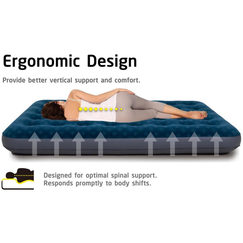 Dank ihrer beflockten Oberfläche fühlt sich die Matratze angenehm an und bietet eine hervorragende Wärmedämmung. Ideal für kühle Nächte im Zelt oder zum Entspannen im Freien. Ihr ergonomisches Design passt sich der Körperform an und sorgt für Komfort und optimale Unterstützung der Wirbelsäule.