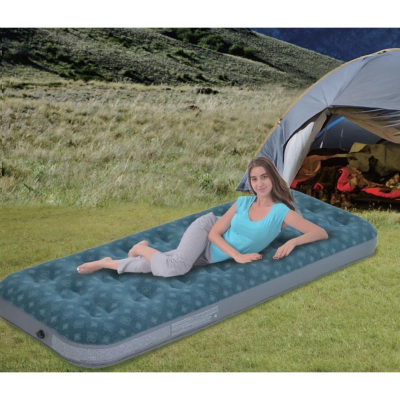 Die 191 x 73 x 22 cm große, beflockte Matratze 24501 mit 3D-Druck für eine Person vereint Komfort, modernes Design und Langlebigkeit. Sie eignet sich perfekt für Camping, Garten, Urlaub oder als Gästebett. Leicht aufzublasen und kompakt zusammengefaltet ist sie in jeder Umgebung praktisch und funktional.
